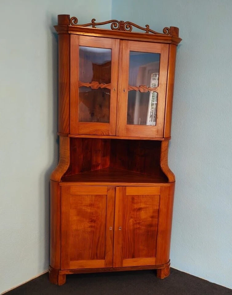 Biedermeier Eckvitrine um 1830 in Esche Nr. 333