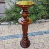 Das Postament befindet sich in gutem, stabilem Zustand. Altersbedingte Trocknungsrisse, kleinere Holzschrumpfungen sowie Versätze an einigen Leimstellen sind vorhanden (siehe Fotos). Auf der oberen Platte ist ein Schatten des Objekts sichtbar, das dort über lange Zeit stand.