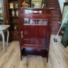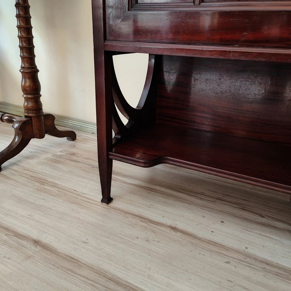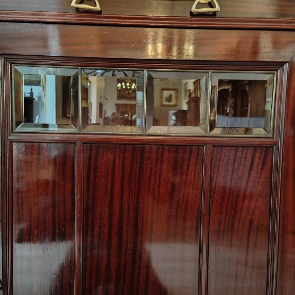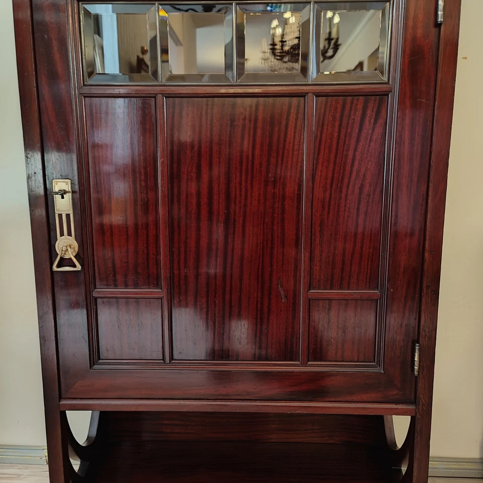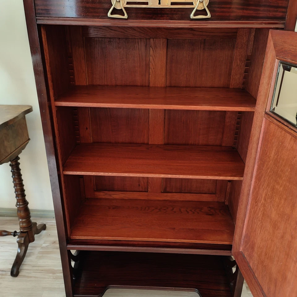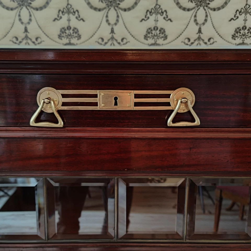 Zierliches Jugendstil Vertiko, gefertigt aus massivem Mahagoni und ausdrucksstarkem Mahagonifurnier auf soliden Eichenbrettern von der Hofmöbelfabrik Georg Müller Baden-Baden.