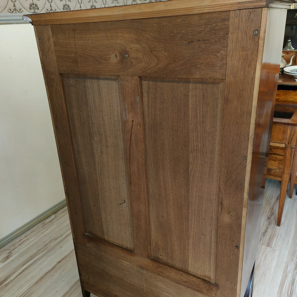 Zu erwähnen wäre die Reperatur einer kleinen Beschädigung unten bei der mittleren Türfüllung – siehe auch Foto.