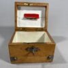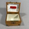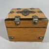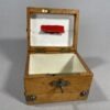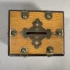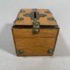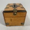 Kleine Gründerzeitspardose aus Holz mit zierlichen Metallbeschlägen im Stile des Historismus. Innen mit Papier (Elefantenhaut) ausgekleidet. Kleiner Schlüssel zu vorsichtigem Gebrauch vorhanden.