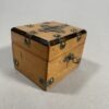 Kleine Gründerzeitspardose aus Holz mit zierlichen Metallbeschlägen im Stile des Historismus. Innen mit Papier (Elefantenhaut) ausgekleidet. Kleiner Schlüssel zu vorsichtigem Gebrauch vorhanden.