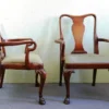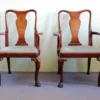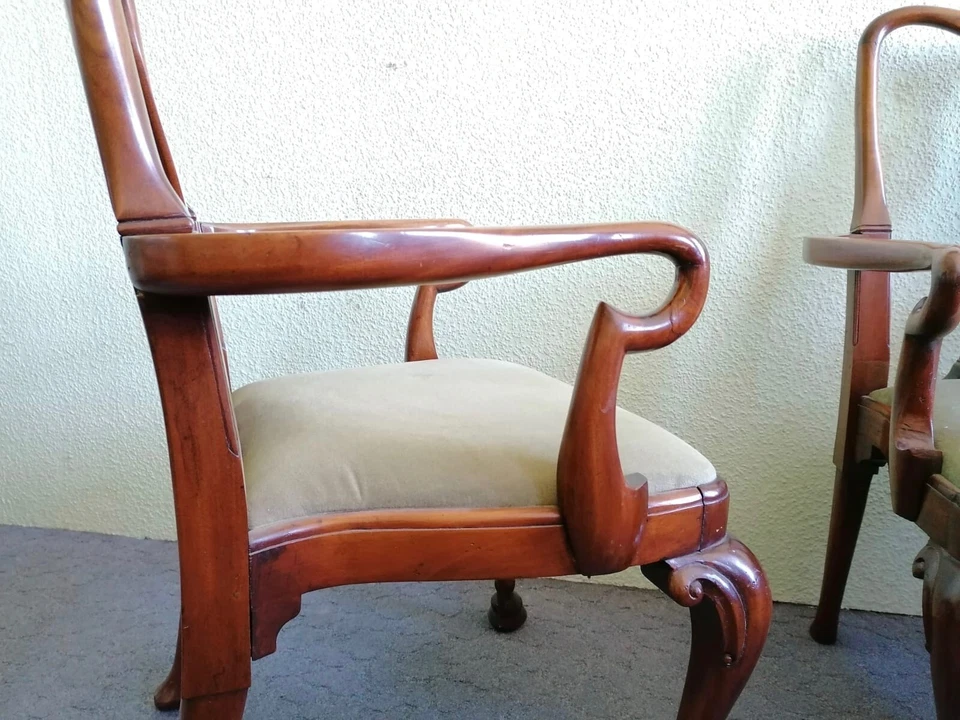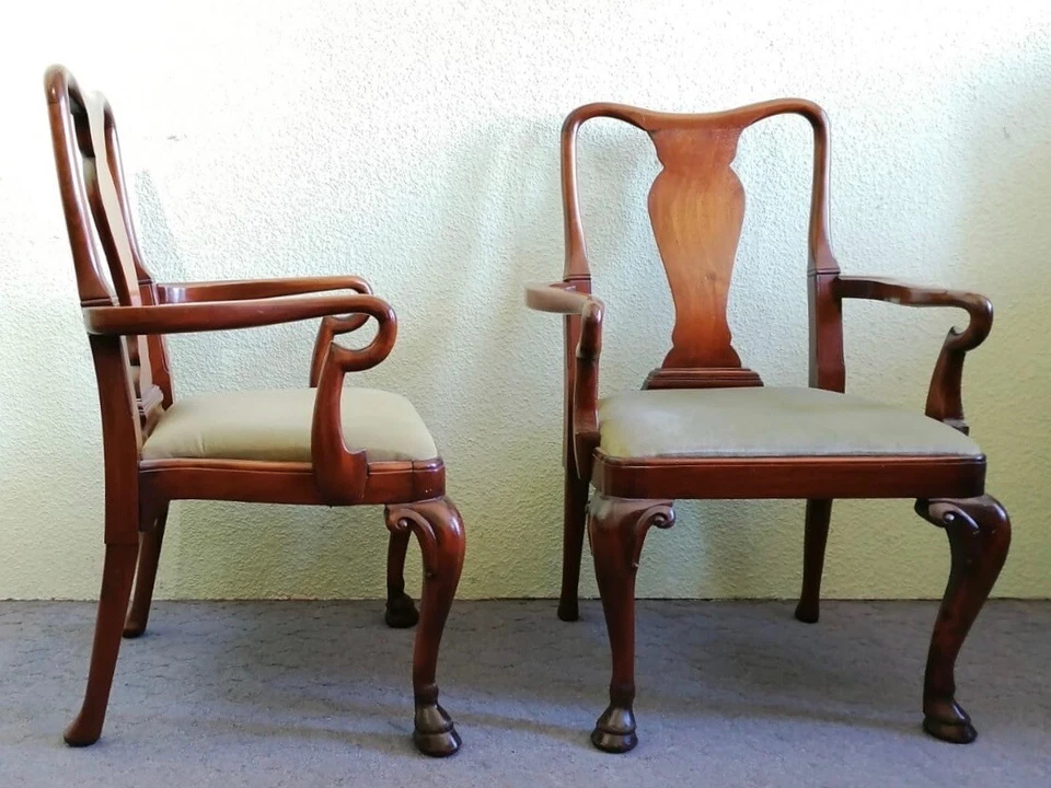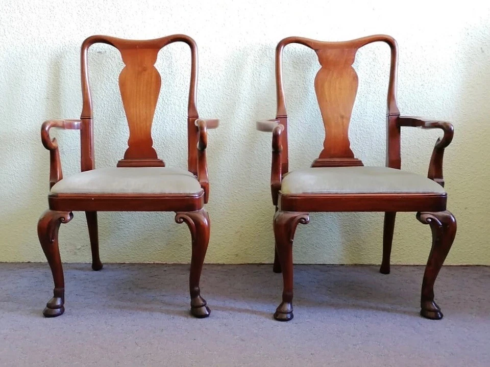 Dieses Paar-Mahagoni-Armlehnstühle wurde Anfang des letzten Jahrhunderts im Barock-Stil gefertigt. Ihre geschwungenen Lehnen und Beine, die in geschnitzten Hufen auslaufen, machen den besonderen Charme dieser großen bequemen Stühle aus.