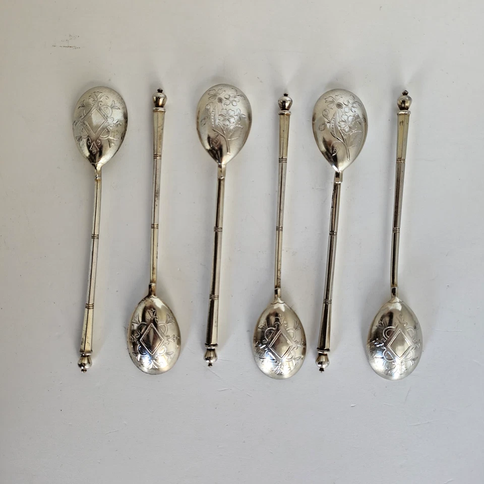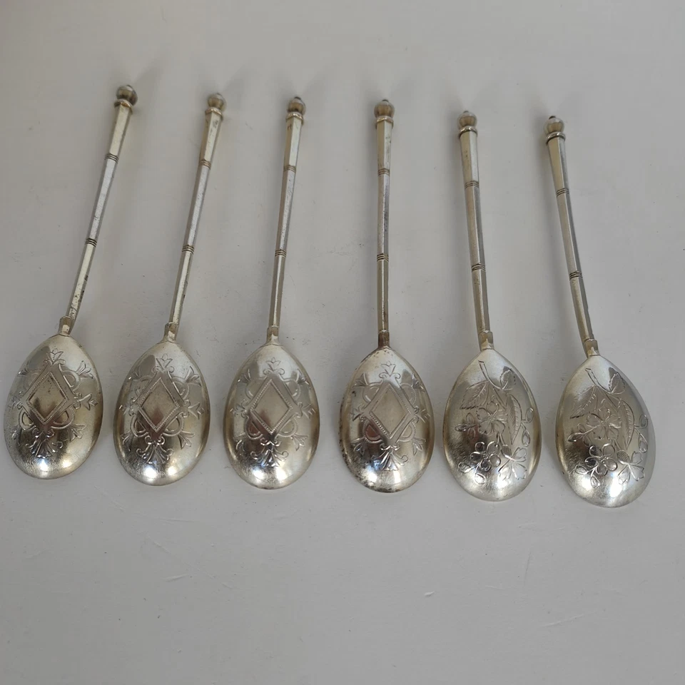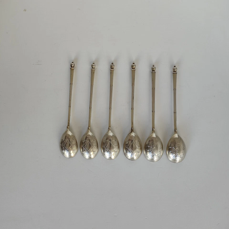 Sechs russische Teelöffel aus 84 Zolotnik/Silber: